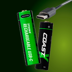 - Optimized Voltage™ - funziona in tutti i tuoi dispositivi. Alcune batterie ricaricabili funzionano male in certi dispositivi - forniscono troppo poca tensione, e il dispositivo si comporta in modo strano o non funziona. Possono essere candele LED che improvvisamente sfarfallano in modo irregolare, o luci natalizie in cui metà della catena brilla più debolmente del resto. In apparecchiature più sensibili - console da gioco, fotocamere e attrezzature di comunicazione - può significare messaggi di errore o il dispositivo non si avvia affatto. Coast ZITHION-X® è progettata per comportarsi esattamente come una normale batteria alcalina monouso. Ciò significa che funziona in tutto - senza sorprese.